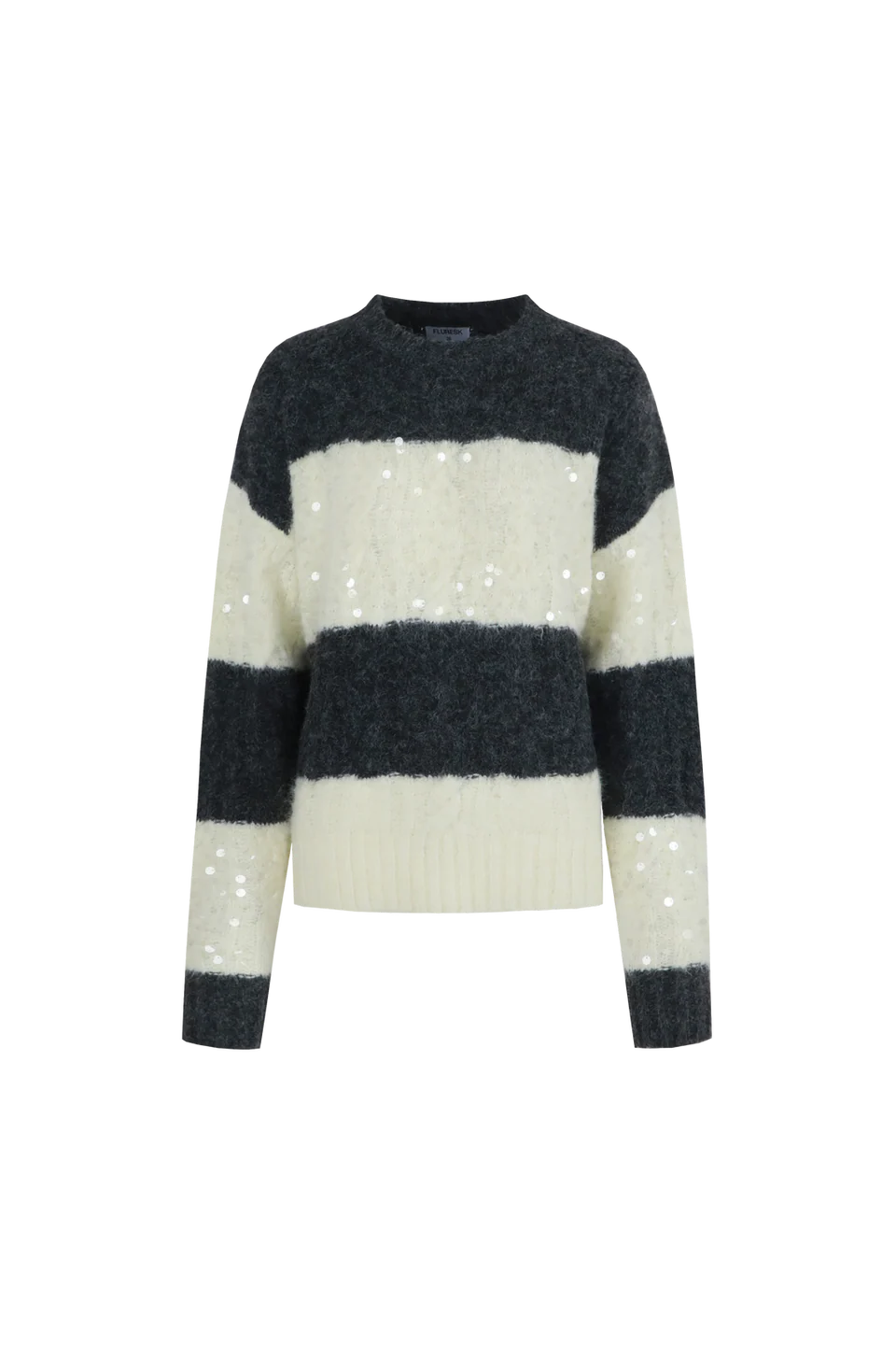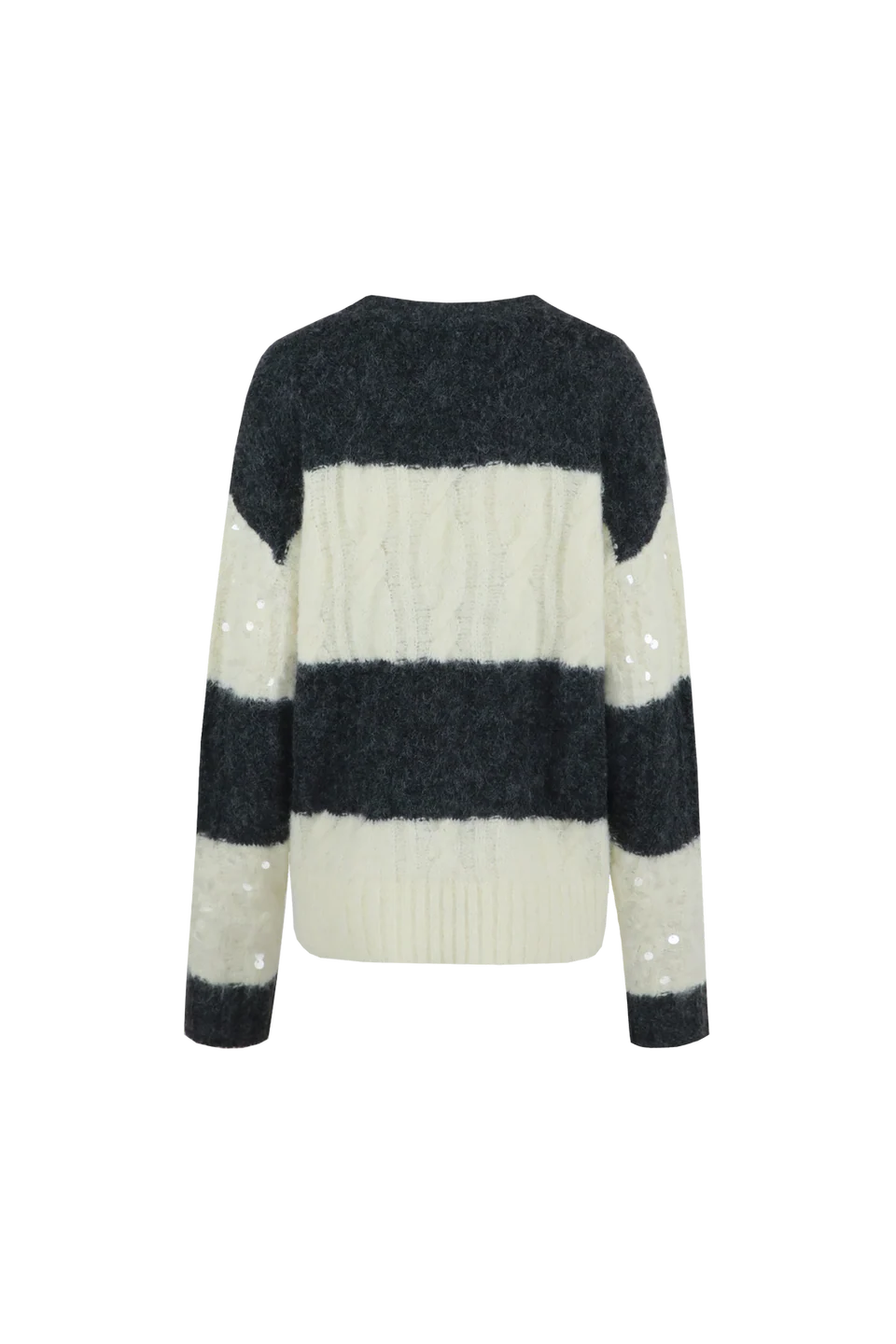 Glitter & glam maar dan comfy! De SELERA KNIT SWEATER is een echte eyecatcher met zijn opvallende colorblock strepen en subtiele pailletten. Color:Shadow Grey/Vanilla